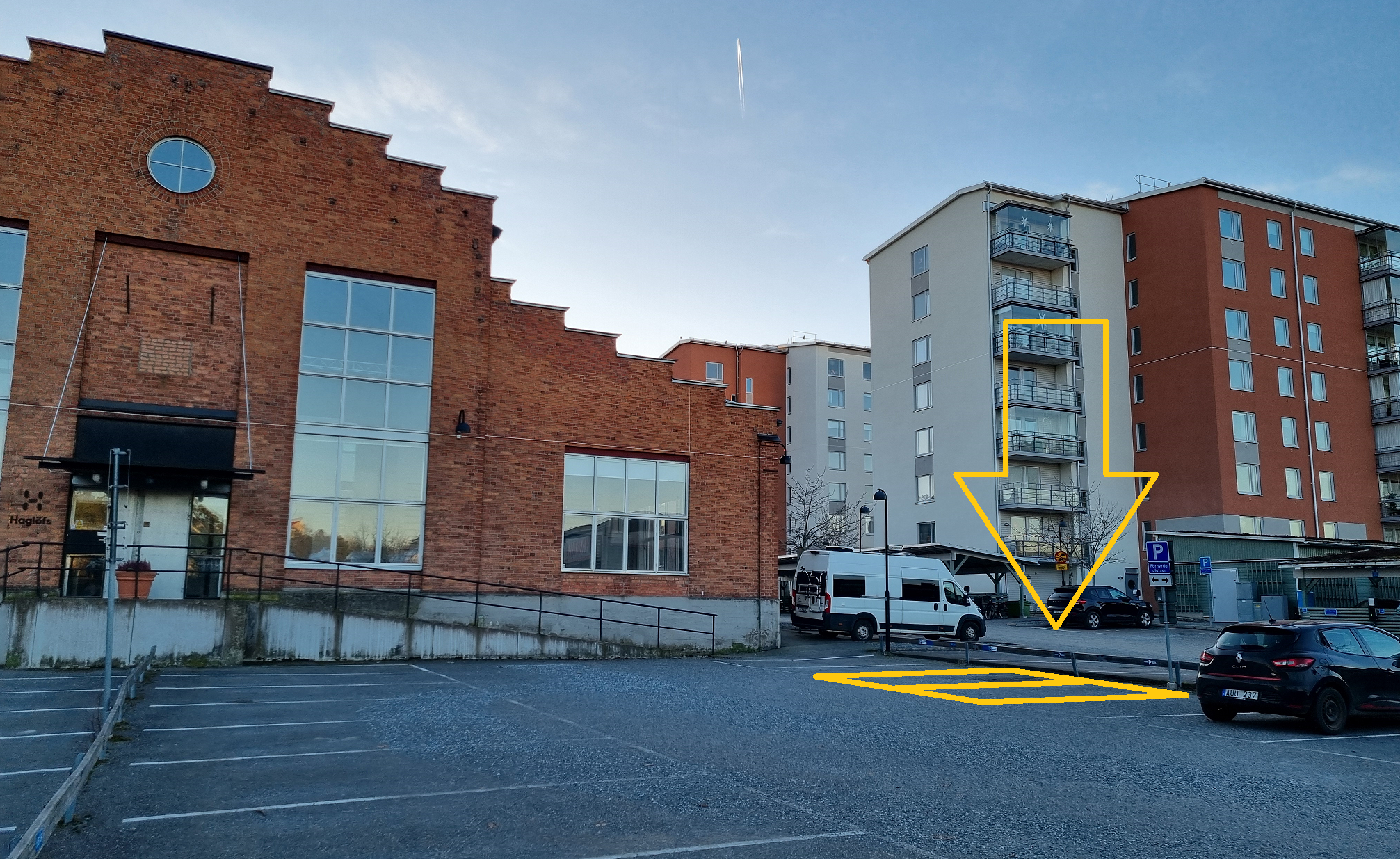 Föreningen upplåter egna, bokningsbara gästplatser i de tider då det finns möjlighet. Bokning sker på våra informationstavlor i entréerna. Där syns även vilken parkeringsplats som bokningen gäller. De två platserna är märkta 905 och 906 och de finns på Henry Bergstens väg 3, på parkeringsplatsen på gaveln till tegelhuset där Haglöfs tidigare hade kontor:
