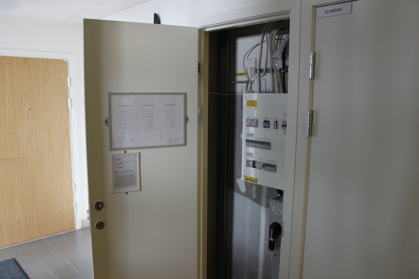Elen i din lägnehet levereras via en leverantör som du själv upprättar avtal med. Alla abonemangsfrågor skall riktas till denna leverantör. Elmätare sitter på entréplan och kan kontrolleras genom beskrivningen nedan angående kontroll av lägenhetens huvudsäkringar som även de finns i skåpen på entréplan.